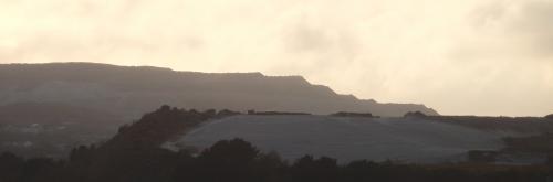 Many of the early tips, all of which used to be white, have now grown over. Here is an image of three pyramid shaped tips long since grown over with trees.